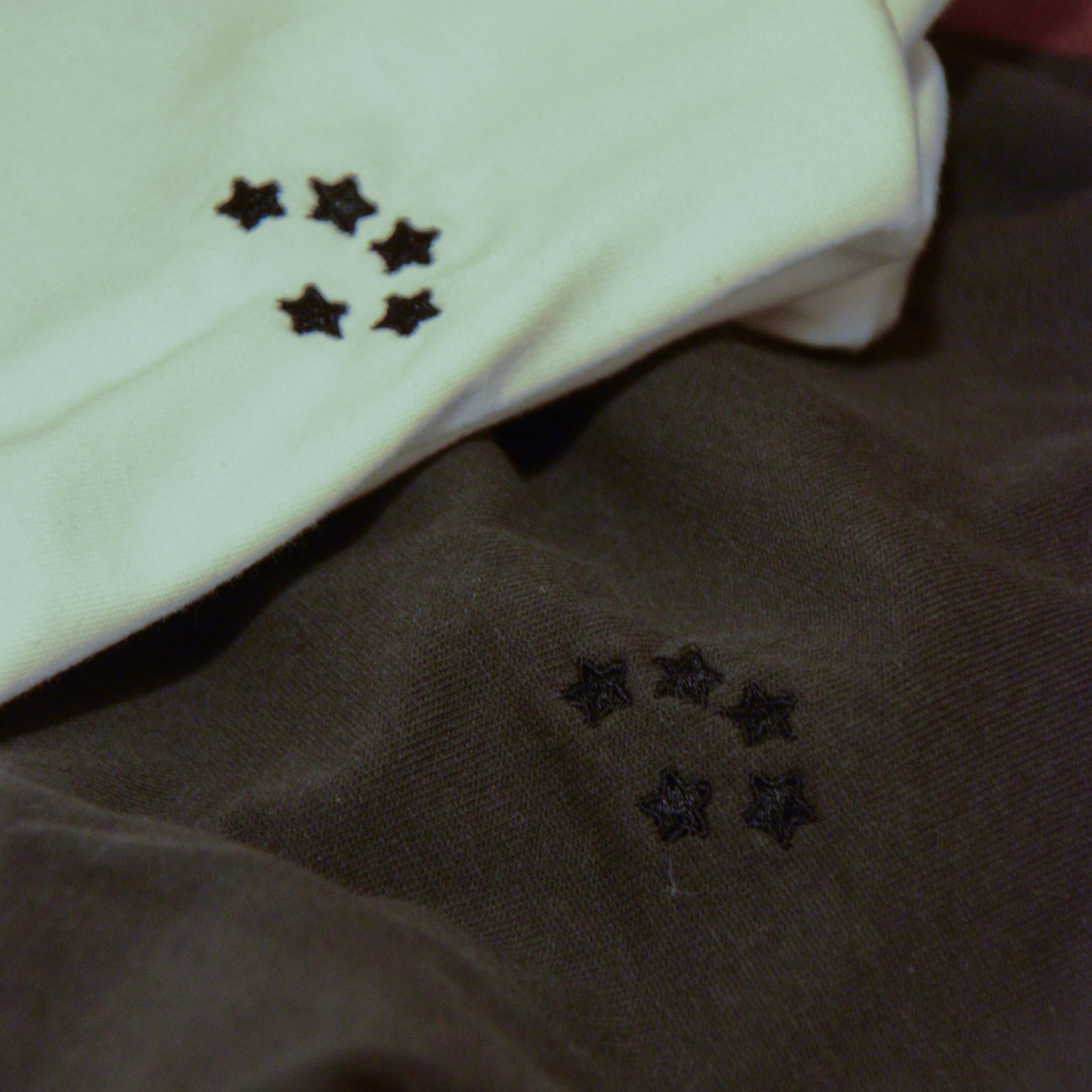 表面の左胸には夜空を表現した刺繍
